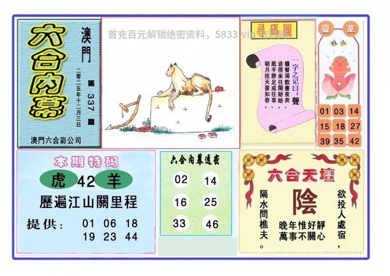 339期:电脑推算/正版解一肖输精光/玄机解一肖/六合皇五字